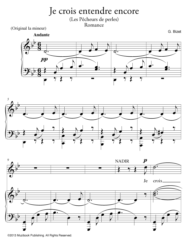 Je crois entendre encore. Extrait de l'opéra ''Les Pêcheurs de perles'' par Georges Bizet. Piano et Chant. Français. Intermédiaire. MCL921