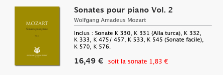 Ce second volume renferme quelques-unes des sonates pour piano de Mozart les plus jouées mais aussi les plus avancées. Il inclut notamment la célèbre Sonate en la majeur K 331 dite ''Alla turca'', la Sonate facile en do majeur K 545 et la grande Fantaisie et Sonate en do mineur K 475/ 457. La présente publication constitue aujourd'hui la première édition de référence adaptée aux nouveaux usages et supports de lecture. Chaque sonate a été soigneusement réalisée à partir des premières éditions originales ainsi que des sources manuscrites lorsque cela était possible.