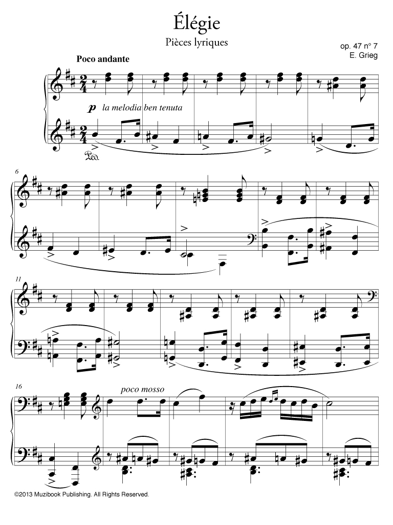 Élégie op. 47 n° 7 extraite des ''Pièces lyriques'' par Edvard Grieg. Piano. Intermédiaire. MCL1009