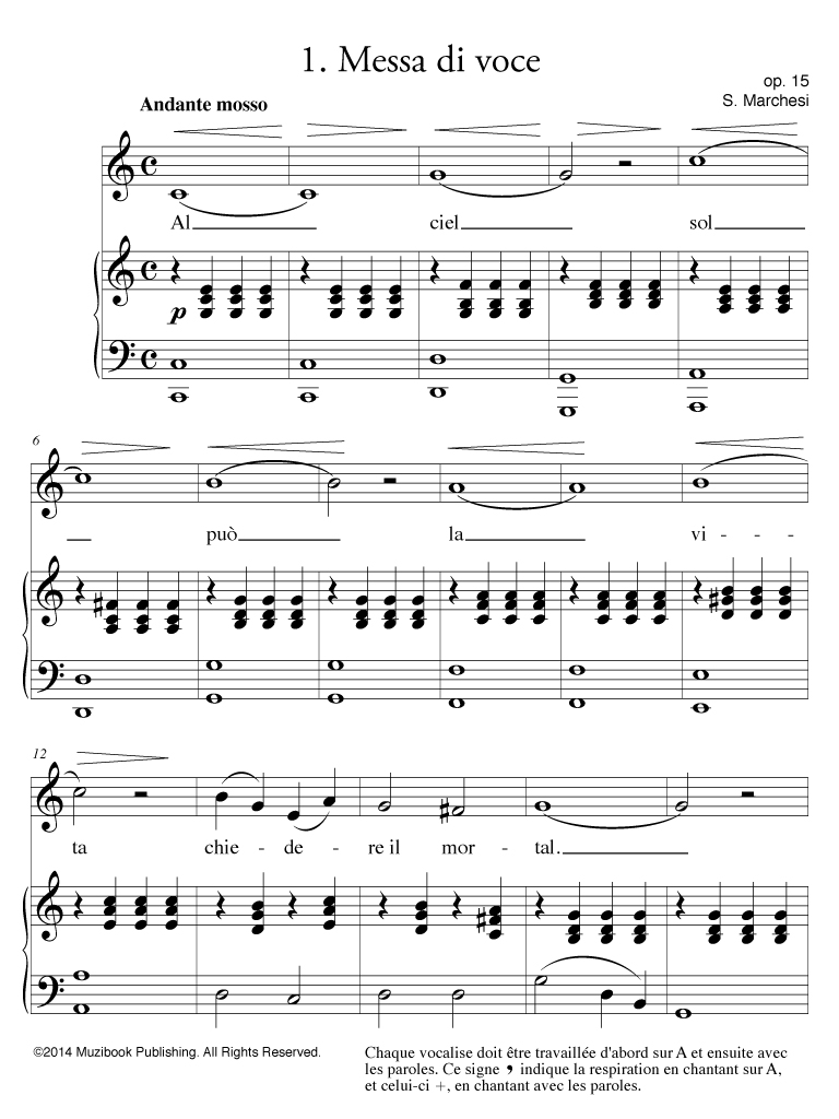 Vingt Vocalises progressives et élémentaires par Salvatore Marchesi. Italien. Intermédiaire. MCL1134