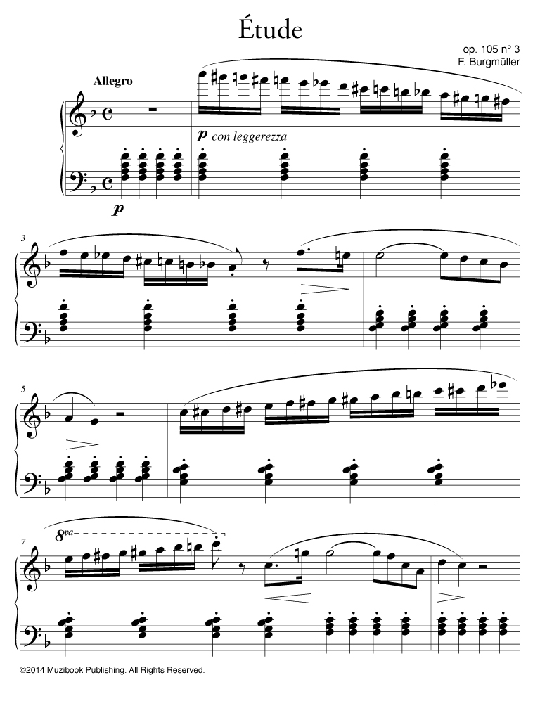 BURGMÜLLER : Étude en fa majeur op. 105 n° 3