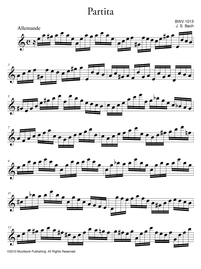 Partita en la mineur BWV 1013 par Jean-Sébastien Bach. Flûte seule. Intermédiaire-Avancé. MCL164