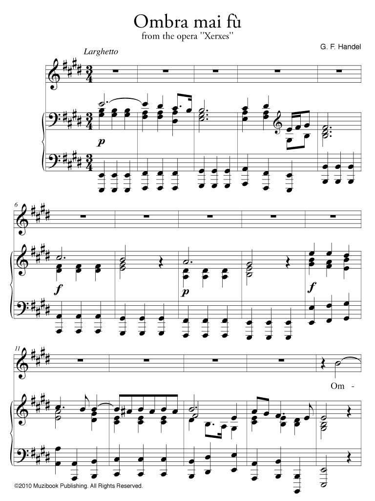 Ombra mai fù de l'opéra Serse par Georg Friedrich Händel. Voix haute/ moyenne/ grave. Italien. Intermédiaire. MCL64v