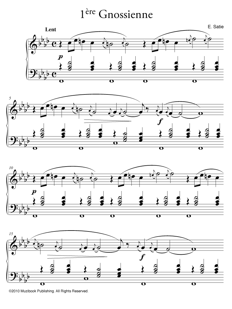 1ère Gnossienne par Erik Satie. Piano seul. Intermédiaire. MCL228