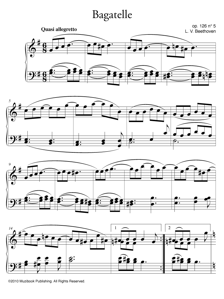 Bagatelle en sol majeur op. 126 n° 5 par Ludwig van Beethoven. Piano. Intermédiaire. MCL268