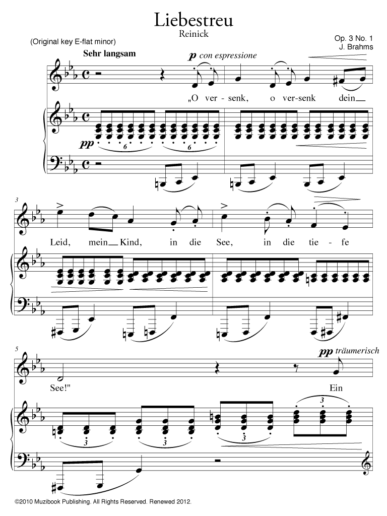 Liebestreu op. 3 n° 1 par Johannes Brahms. Piano et Chant. Voix moyenne*. Allemand. Avancé. MCL158b