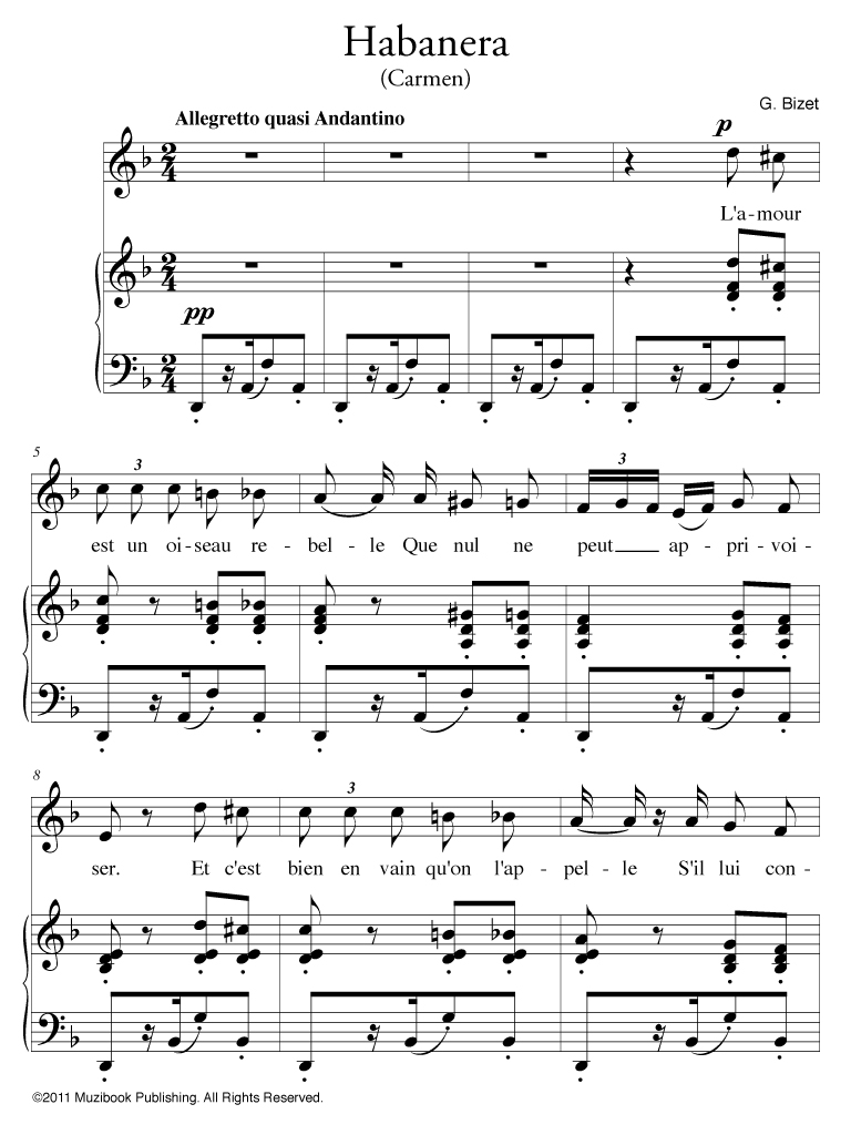 Air extrait de l'opéra-comique ''Carmen'' par Georges Bizet. Piano et Chant. Voix moyenne. Mezzo-soprano. Français. Intermédiaire. MCL588
