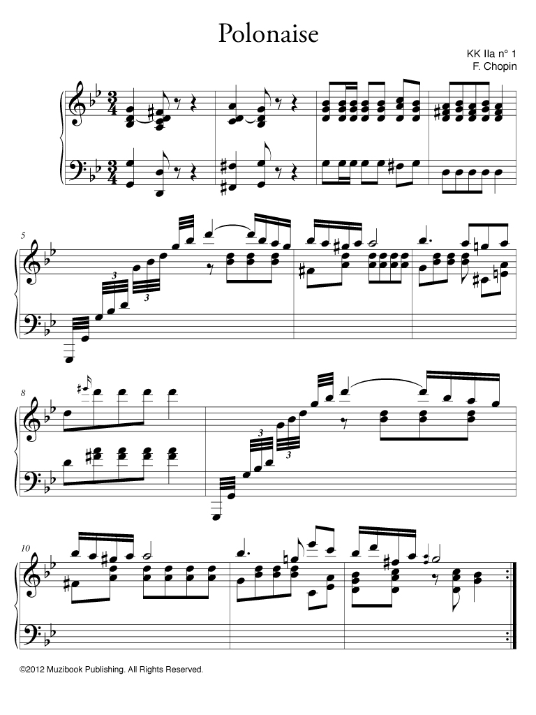 Polonaise en sol mineur par Frédéric Chopin. Piano. Intermédiaire. MCL21