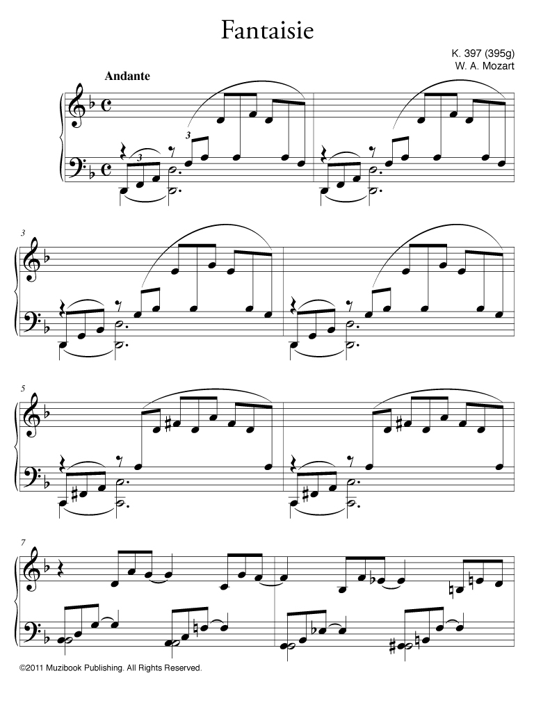 Fantaisie en ré mineur K 397 par Wolfgang Amadeus Mozart. Piano. Intermédiaire. MCL668