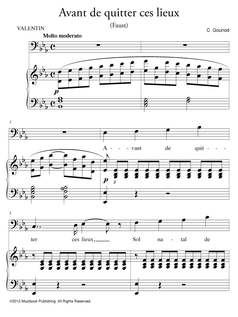 Avant de quitter ces lieux. Air de Valentin. Extrait de l'opéra ''Faust'' par Charles Gounod. Piano et Chant. Voix moyenne. Baryton. Français. Intermédiaire. MCL722