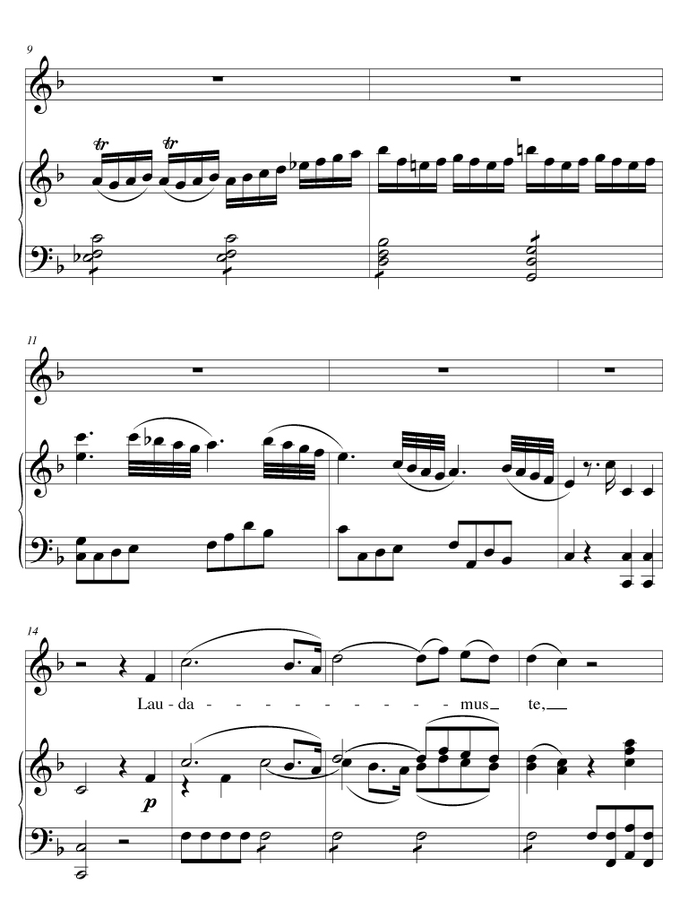 Laudamus te. Air extrait de la Messe en do mineur K 427 par Wolfgang Amadeus Mozart. Piano et Chant. Voix haute. Mezzo-soprano ou Soprano. Latin. Avancé. MCL724