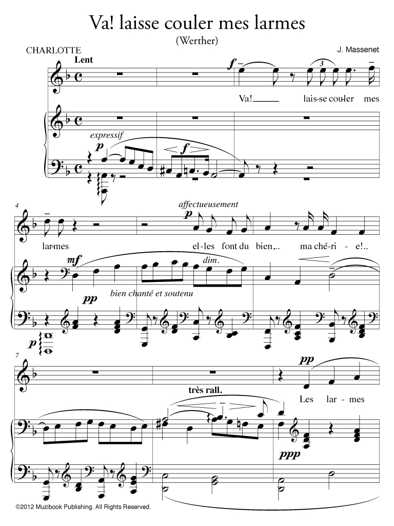 Air extrait de l'opéra ''Werther'' par Jules Massenet. Piano et Chant. Mezzo-soprano. Français. Intermédiaire-Avancé. MCL746