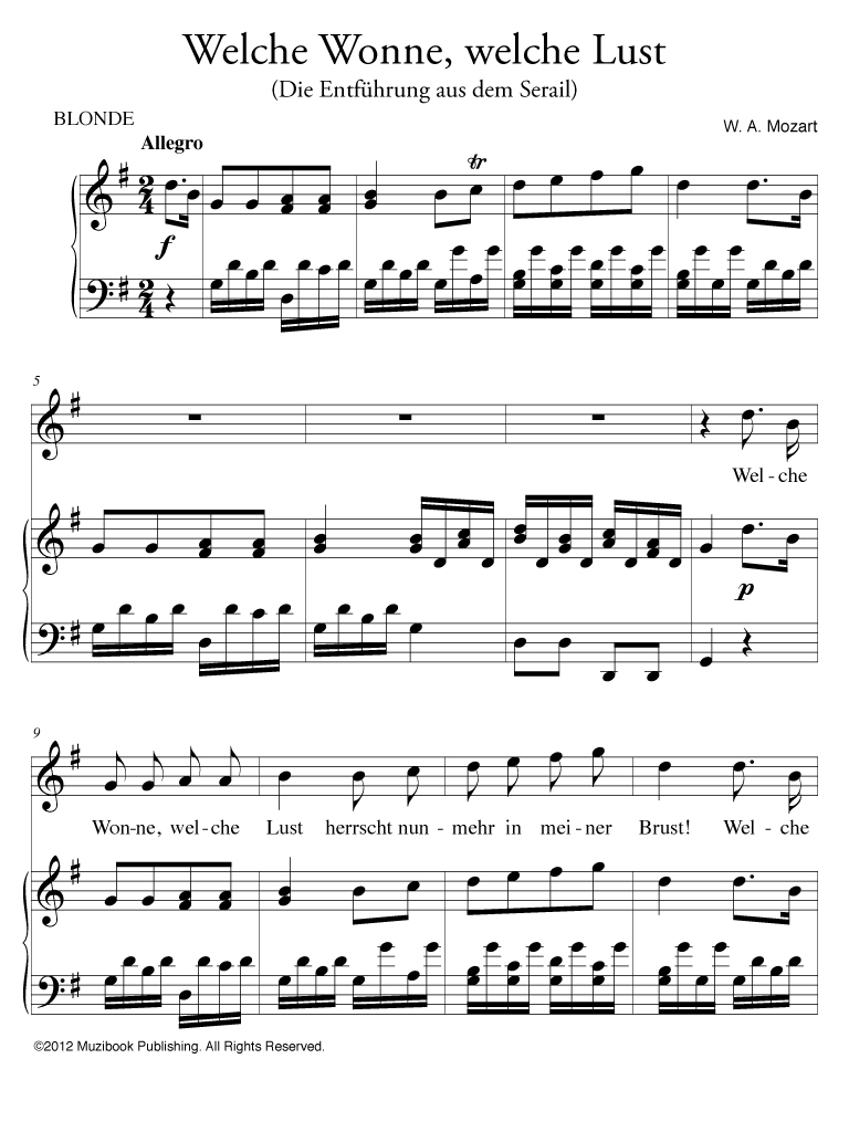 Air extrait de l'opéra ''Die Entführung aus dem Serail'' (L'Enlèvement au sérail) par Wolfgang Amadeus Mozart. Piano et Chant. Soprano. Allemand. Intermédiaire-Avancé. MCL809