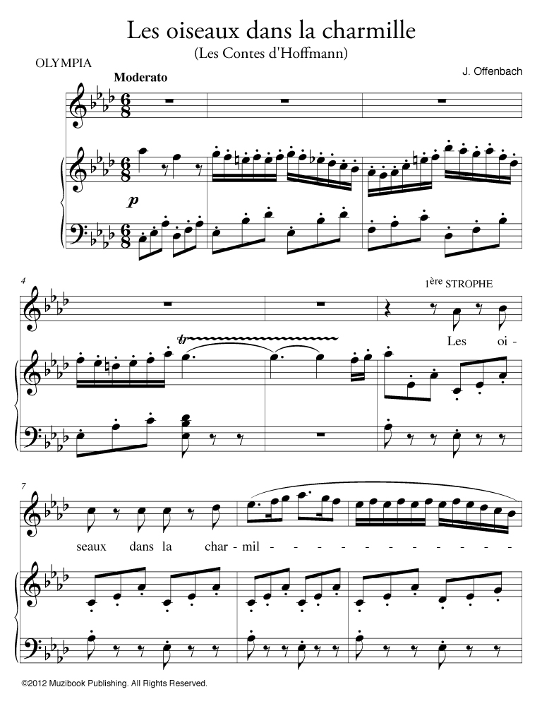 Air extrait de l'opéra ''Les Contes d'Hoffmann'' par Jacques Offenbach. Piano et Chant. Soprano. Français. Intermédiaire-Avancé. MCL850