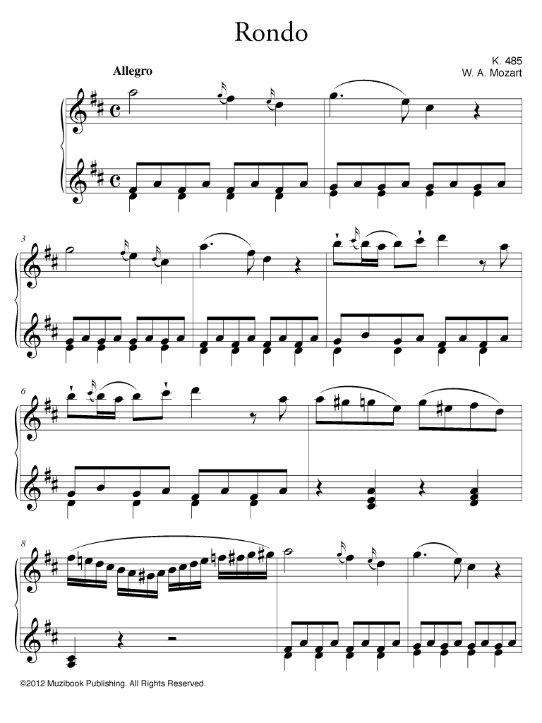 Rondo en ré majeur K 485 par Wolfgang Amadeus Mozart. Piano. Intermédiaire. MCL863