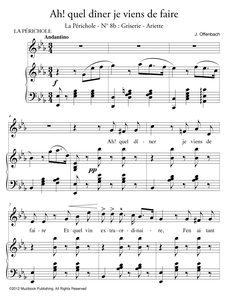 Airs de La Périchole extrait de l'opéra ''La Périchole'' par Jacques Offenbach. Livret de Ludovic Halévy et Henri Meilhac. Piano et Chant. Mezzo-soprano. Français. Intermédiaire. MCL867
