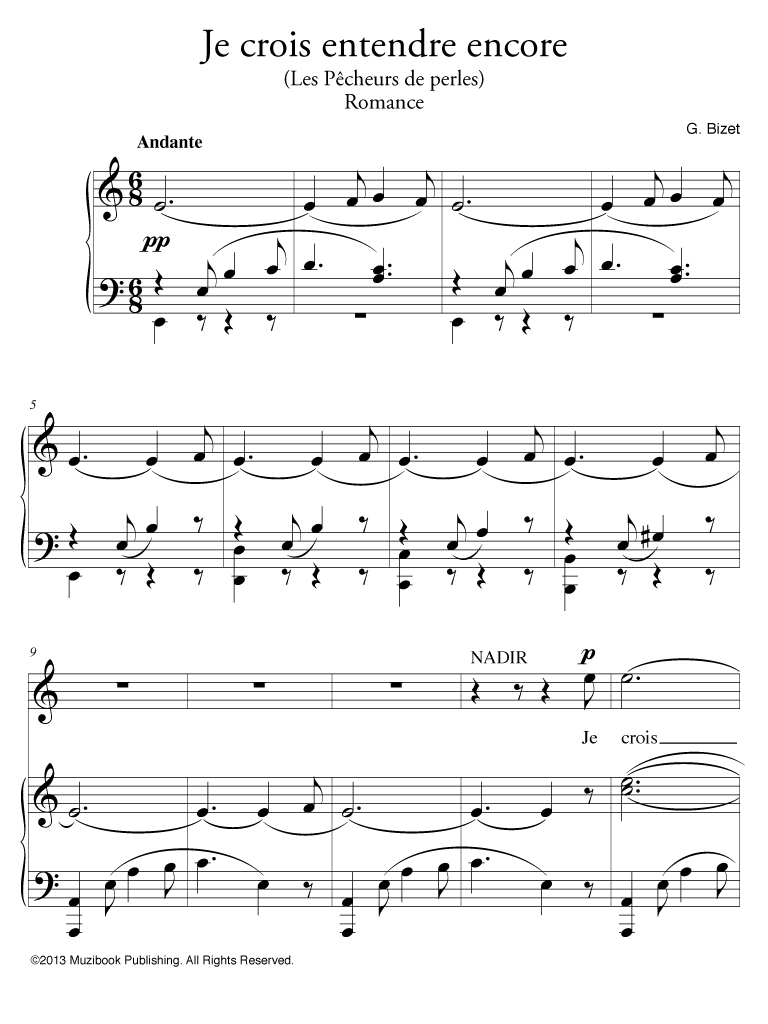 Air extrait de l'opéra ''Les Pêcheurs de perles'' par Georges Bizet. Piano et Chant. Ténor. Français. Intermédiaire. MCL886
